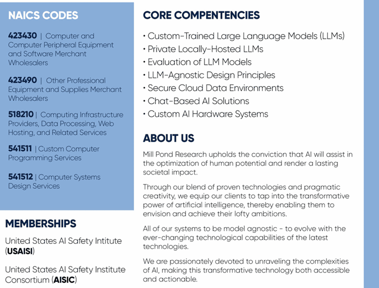 Our AI-powered tool rapidly creates compelling, professional capability statements that effectively showcase your unique strengths, expertise, and competitive advantages to potential government clients and strategic partners.